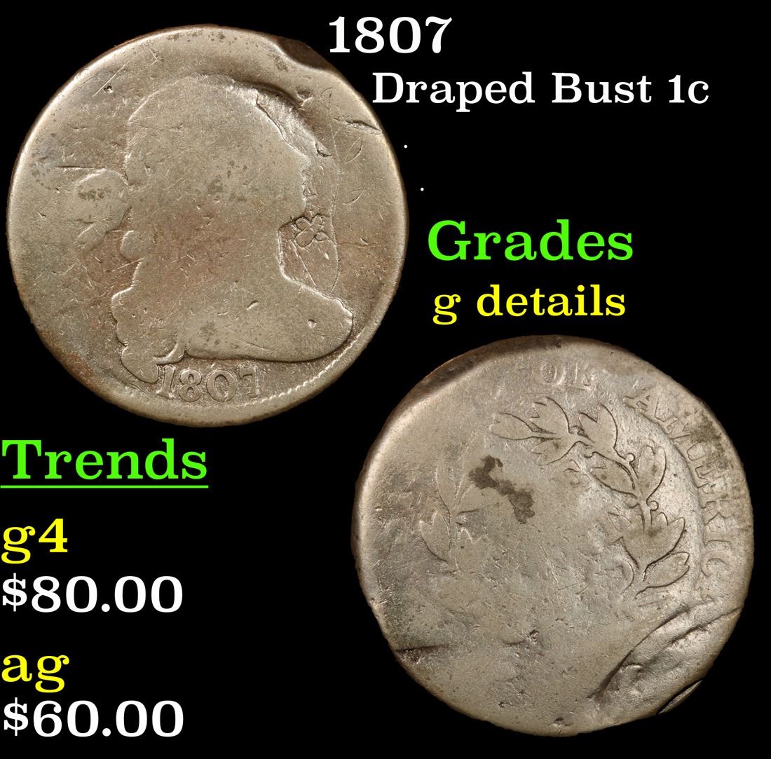 1807 . . Draped Bust Large Cent 1c Grades g details.