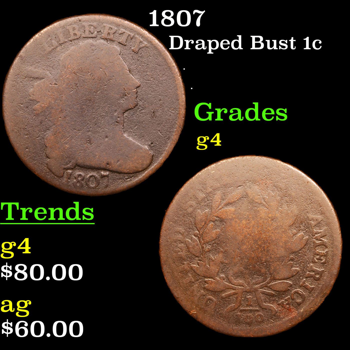 1807 Draped Bust Large Cent 1c Grades g, good.