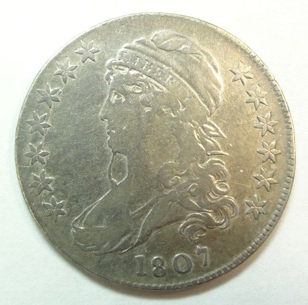 1807 Half Dollar, Capped Bust, scarce overton 111b R5 "bearded goddess" VF/XF
