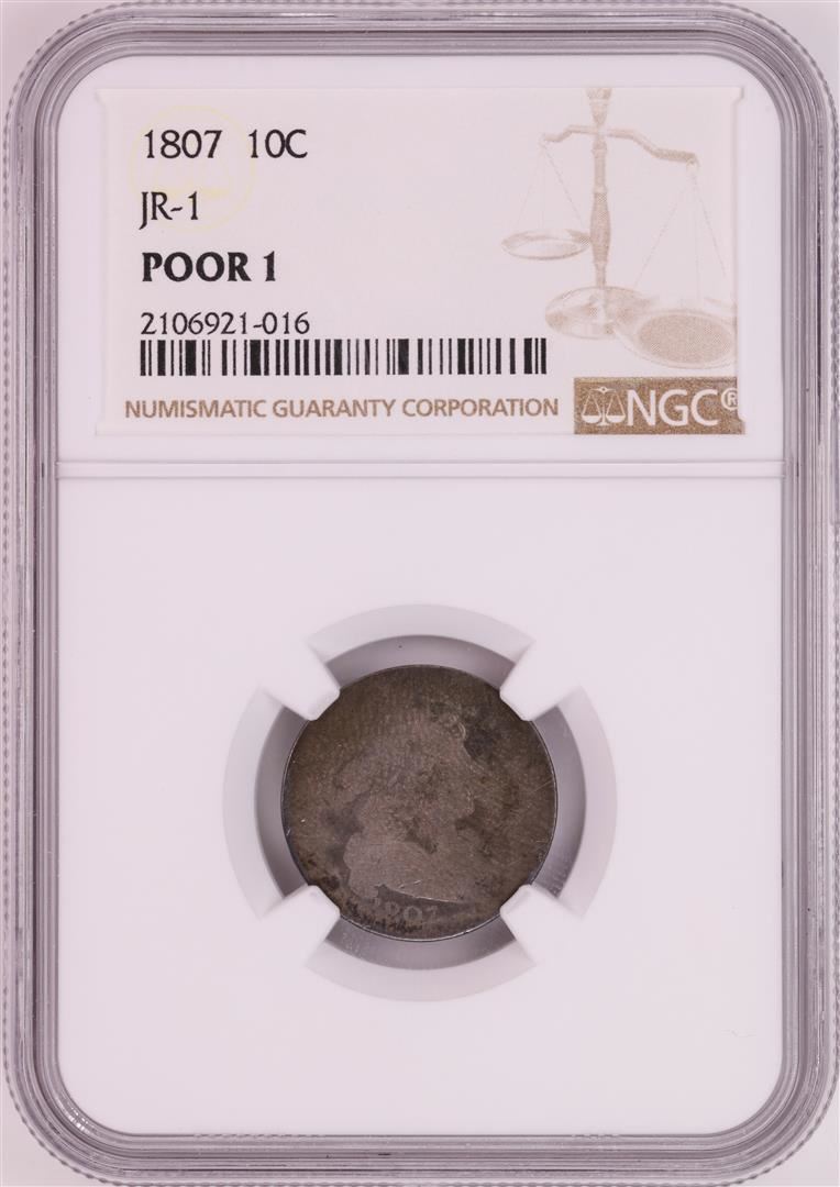 One 1807 JR-1 Draped Bust Dime Coin NGC Poor 1. NGC Certified.
