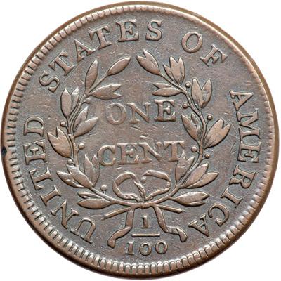 1807 S-271 R1 "Comet Obverse". PCGS graded VF-30. Choice glossy chocolate brown. A beautiful cent, virtually flawless. The notable marks are a small nick left of the L in LIBERTY and a rim nick over the E in UNITED. M-LDS, Breen state VI, with a strong "Comet" die flaw in the field behind the head plus similar but weaker die flaws in the fields on either side of the portrait. A wonderful example of this popular "Redbook" variety in a die state that displays the "Comet" flaw in full bloom. Our grade is VF20 choice.