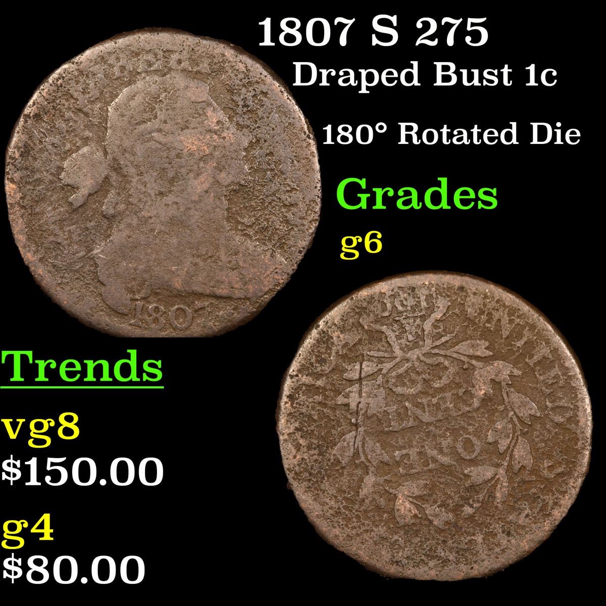 1807 S 275 Draped Bust Large Cent 1c Grades g+.