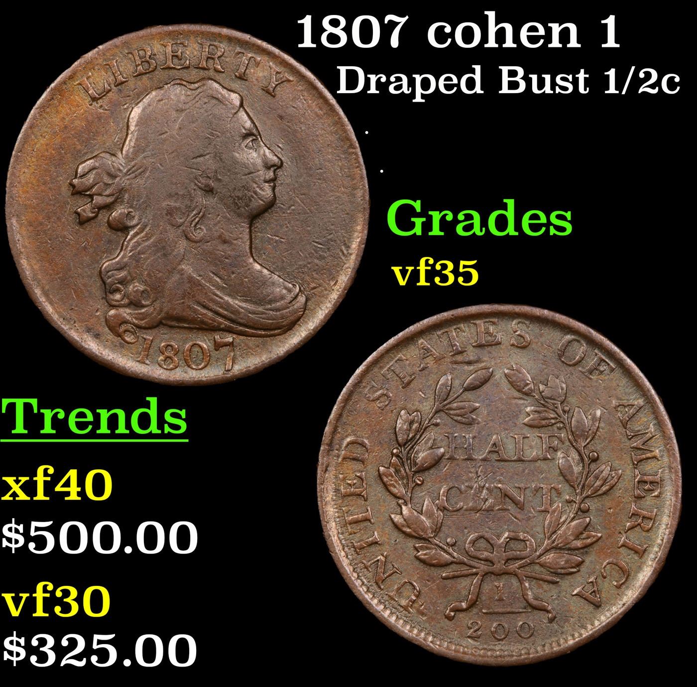 1807 cohen 1 Draped Bust Half Cent 1/2c Grades vf++.