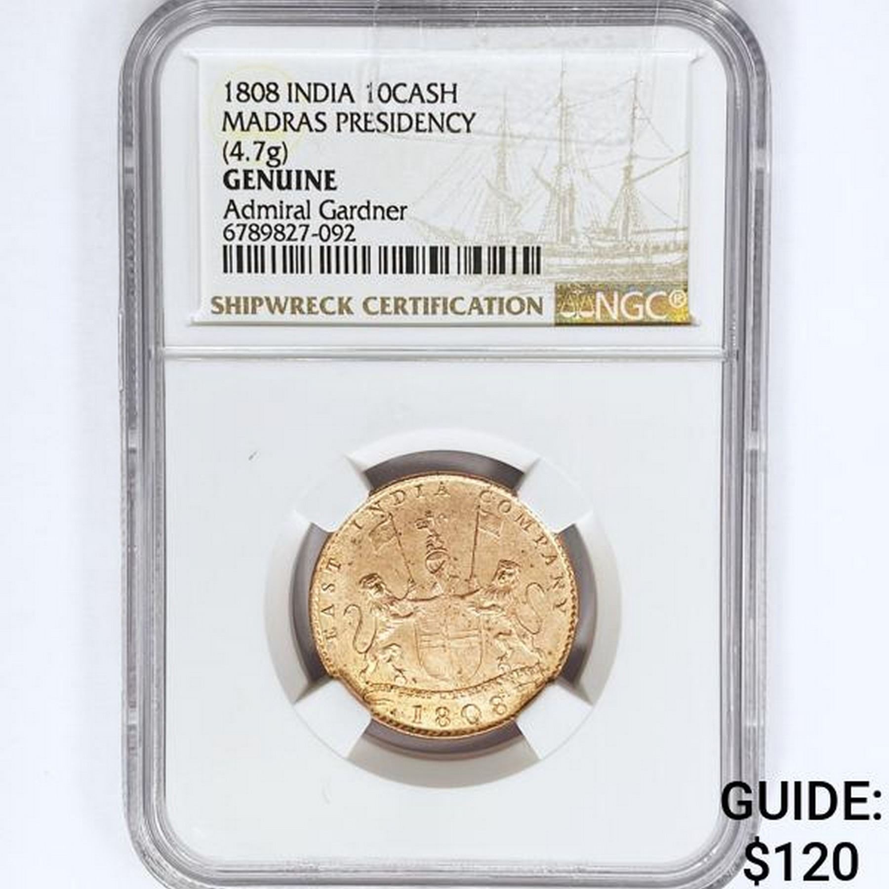 1808 10 Cash 4.7g India NGC Shipwreck