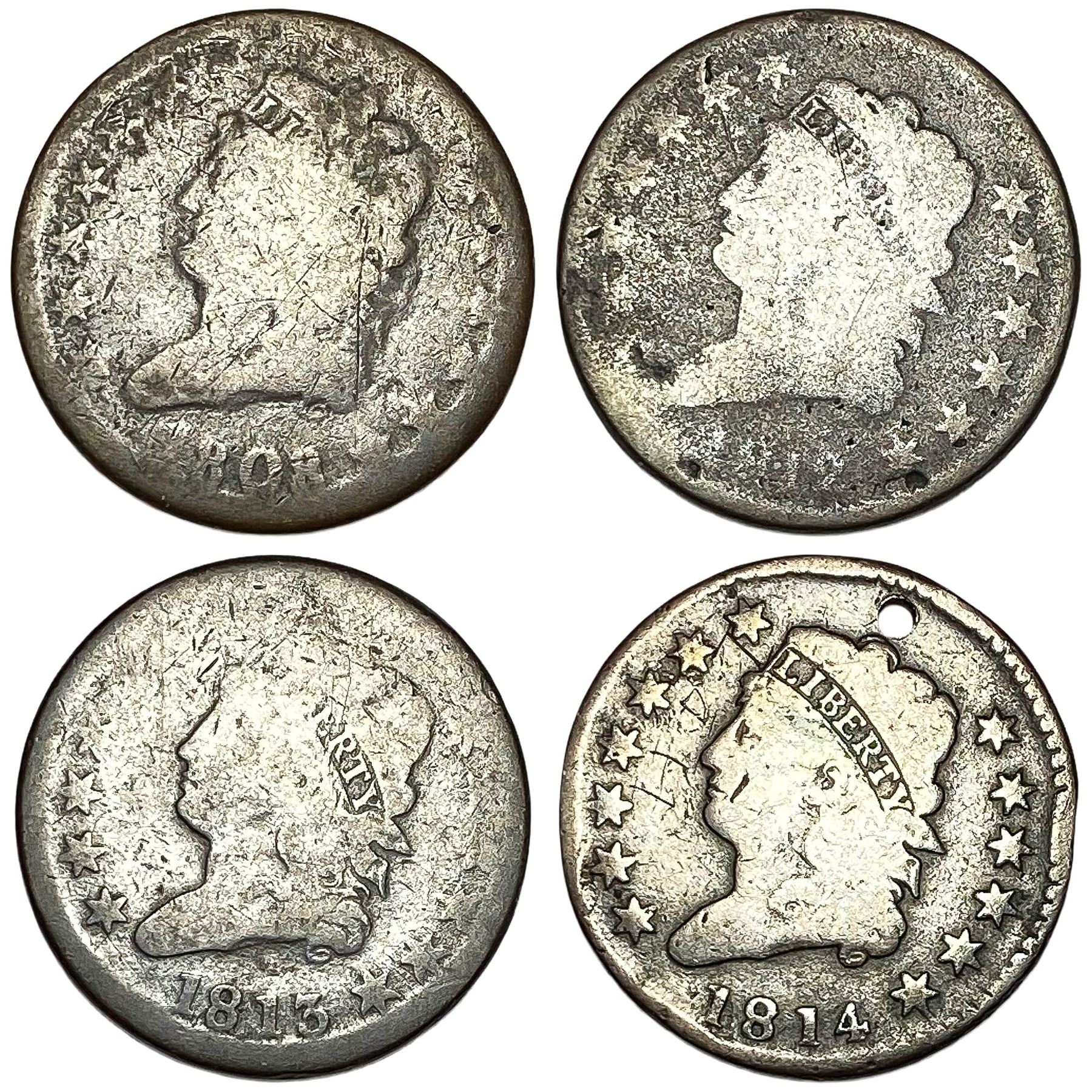 1808-1814 Classic Head Large Cent Lot [4 Coins] Avg Circ