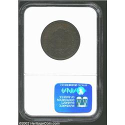 1808 1C AU50 NGC. S-278, R.3. Like the Noyes' plate coin and the MS66 example of this variety we also handled, this piece is struck slightly off center. Irregularly defined, the surfaces are a warm, chocolate brown color with a few light field marks scattered about. Important notice: We expect to be auctioning lots at the rate of 200-250 per hour. Sometimes eBay Premier live bid software cannot keep up with that pace, so we strongly recommend that you place a realistic proxy bid now as insurance to avoid disappointment. Also please note that all Heritage/CAA lots purchased through eBay Premier carry a 20% Buyer's Premium. Please make sure you read the Terms and Conditions.