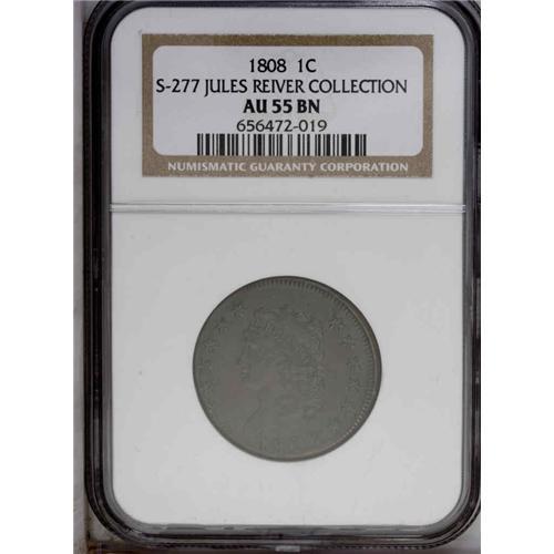 1808 1C S-277, B-1, R.2. AU55 NGC. VF35 EAC. Struck fr 1808[1C] S-277, B-1, R.2. AU55 NGC. VF35 EAC.
