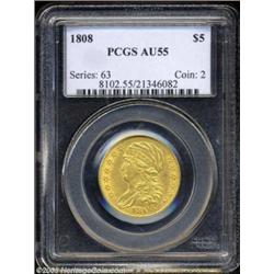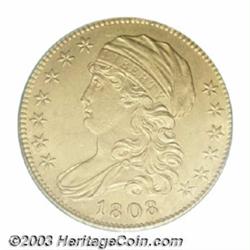 <table><tr><td><TABLE cellSpacing=0 cellPadding=0 width="100%" bgColor=#000000 border=0><TBODY> <TR><TD width="100%"><TABLE cellSpacing=1 cellPadding=3 width="100%" border=0><TBODY><TR><TD width="100%" bgColor=#79735c><FONT face=arial color=#ffffff size=3><B>Description</B> </FONT></TD></TR><TR><TD width="100%" bgColor=#ffffff><FONT face=arial size=2><B>1808 $5 AU55 PCGS.</B></I> Close 5D, Breen-6456, B. 4-A, Miller-106, R.5. The various obverse varieties of 1808 Half Eagles can be fiendishly difficult to differentiate, but Breen 2 has an open curl above the 0 in the date, while Breen 1 has the eighth star high relative to the cap. Breen 3 is now believed to be the same die as Breen 4. An exquisitely struck early Half Eagle that has satiny luster throughout the borders and devices. The absence of remotely relevant handling marks contributes further to the eye appeal. Struck from boldly clashed dies.<BR><I>Ex: Stack's, 1/1996, lot 1316, which realized $4,510.</B></I> </FONT></TD></TR></TBODY></TABLE></TD></TR></TBODY></TABLE><BR><A name=PricesRealized></A><TABLE cellSpacing=0 cellPadding=0 width="100%" bgColor=#000000 border=0><TBODY><TR><TD width="100%"><TABLE cellSpacing=1 cellPadding=3 width="100%" border=0><TBODY><TR><TD width="100%" bgColor=#79735c><A name=PR><FONT face=arial color=#ffffff size=3><B>Previous Prices from Heritage Auctions</B> </FONT></A></TD></TR><TR><TD bgColor=#f6f6ed><TABLE cellSpacing=0 cellPadding=0 width="100%" border=1><TBODY><TR><TD align=middle width="33%"><B>Date</B></TD><TD align=middle width="33%"><B>Service</B></TD><TD align=middle width="33%"><B>Price</B></TD></TR><TR bgColor=whitesmoke><TD width="33%"><B>02/05/1994</B></TD><TD width="33%">ANACS</TD><TD width="33%">$2,860.00</TD></TR><TR bgColor=whitesmoke><TD width="33%"><B>03/01/1997</B></TD><TD width="33%">PCGS</TD><TD width="33%">$3,190.00</TD></TR></TBODY></TABLE></TD></TR><TR><TD bgColor=#ffffff><FONT face=arial size=1 ?>PLEASE NOTE: All prices realized reflect the final hammer price PLUS the buyer's premium in auctions that charge a buyer's premium. Each item has a notation at the top of the listing indicating whether that lot included a buyer's premium. Example: A item that sells with a final hammer price of $100 and a 20% buyer's premium will display with a price realized of $120. All information listed is intended to be as accurate as possible, but errors are possible. Please use this guide carefully and inform us of any inaccuracies. </FONT></TD></TR></TBODY></TABLE></TD></TR></TBODY></TABLE><BR><TABLE cellSpacing=0 cellPadding=0 width="100%" bgColor=#000000 border=0><TBODY><TR><TD width="100%"><TABLE cellSpacing=1 cellPadding=3 width="100%" border=0><TBODY><TR><TD width="100%" bgColor=#79735c colSpan=6><FONT face=arial color=#ffffff size=3><B>Price Guide*</B> </FONT></TD></TR><TR bgColor=#f6f6ed><TD align=middle><B>Grade</B> </TD><TD align=middle><B>Coin World<BR>(Trends)</B> </TD><TD align=middle><B>Numismedia<BR>Retail</B> </TD><TD align=middle><B>Numismedia<BR>Wholesale</B> </TD><TD align=middle><B>Coin<BR>Universe</B> </TD><TD align=middle><B>Heritage<BR>Value Index</B> </TD></TR><TR bgColor=#ffffff><TD align=middle>53</TD><TD align=right>---</TD><TD align=right>---</TD><TD align=right>$2,825.00</TD><TD align=right>---</TD><TD align=right>$3,483.67</TD></TR><TR style="FONT-WEIGHT: bold" bgColor=#cccfdd><TD align=middle>55</TD><TD align=right>$5,500.00</TD><TD align=right>---</TD><TD align=right>$3,400.00</TD><TD align=right>$4,750.00</TD><TD align=right>$3,666.67</TD></TR><TR bgColor=#ffffff><TD align=middle>58</TD><TD align=right>$6,500.00</TD><TD align=right>---</TD><TD align=right>$4,450.00</TD><TD align=right>---</TD><TD align=right>$3,998.00</TD></TR><TR bgColor=#ffffff><TD colSpan=6><FONT size=1>*All information listed is intended to be as accurate as possible, but errors are possible. No item may be returned or refused based on this information which is provided as a service to our customers. You should contact each pricing source directly to determine the accuracy of this information. </FONT></TD></TR></TBODY></TABLE></TD></TR></TBODY></TABLE><BR><TABLE cellSpacing=0 cellPadding=0 width="100%" bgColor=#000000 border=0><TBODY><TR><TD width="100%"><TABLE cellSpacing=1 cellPadding=3 width="100%" border=0><TBODY><TR><TD width="100%" bgColor=#79735c><FONT face=arial color=#ffffff size=3><B>Population Guide</B> </FONT></TD></TR><TR bgColor=#ffffff><TD align=middle><!-- Begin Output of Population Grid--><TABLE cellSpacing=0 cellPadding=0 width="100%" border=0><TBODY><TR><TD vAlign=center><TABLE cellSpacing=0 width="100%" border=1 cellsadding="3"><TBODY><TR><TD vAlign=center><TABLE cellSpacing=0 cellPadding=3 width="100%" border=1><TBODY><TR><TD vAlign=center align=middle bgColor=#f0f1e8 colSpan=2 <CENTER><FONT face=Arial size=2><B>PCGS Pop </B></FONT><CENTER></CENTER></TD><TD vAlign=center align=middle bgColor=#f0f1e8 colSpan=2><CENTER><FONT face=Arial size=2><B>NGC Pop</B></CENTER></FONT></TD></TR><TR><TD vAlign=center><FONT face=Arial size=2>(55)</FONT> </TD><TD vAlign=center align=right><FONT face=Arial size=2>23</FONT> </TD><TD vAlign=center><FONT face=Arial size=2>(55)</FONT> </TD><TD vAlign=center align=right><FONT face=Arial size=2>15</FONT> </TD></TR><TR><TD vAlign=center><FONT face=Arial size=2>(>55)</FONT> </TD><TD vAlign=center align=right><FONT face=Arial size=2>87</FONT> </TD><TD vAlign=center><FONT face=Arial size=2>(>55)</FONT> </TD><TD vAlign=center align=right><FONT face=Arial size=2>99</FONT> </TD></TR></TBODY></TABLE></TD></TR></TBODY></TABLE></TD></TR></TBODY></TABLE><!-- End Output of Population Grid--></TD></TR></TBODY></TABLE></TD></TR></TBODY></TABLE><BR><TABLE cellSpacing=0 cellPadding=0 width="100%" bgColor=#000000 border=0><TBODY><TR> Important notice: Heritage usually auctions material at the rate of 200-250 lots per hour. On some occasions eBay Live bid software or the Internet may not be able to keep up with the pace of the auction. We recommend placing a re