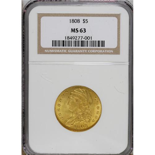 1808 $5 MS63 NGC. Breen-6456, BD-3, R.4. This is the C