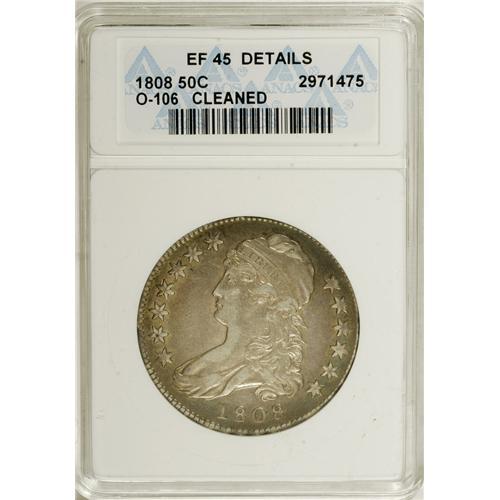 <B>1808 50C --Cleaned--ANACS. XF45 Details.</B></I> O-106. NGC Census: (78/1216). PCGS Population (29/185). Mintage: 1,368,600. Numismedia Wsl. Price for NGC/PCGS coin in XF45: $320. (#6090)<BR><BR><b>Shipping:</b> Coins & Currency (<a target="_blank" href="http://www.heritageauctions.com/common/shipping.php">view shipping information</a>)