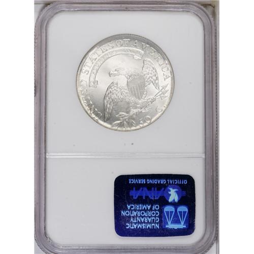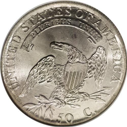<B>1808 50C MS66 NGC.</B></I> O-109a, R.3. A runaway Condition Census example that is completely brilliant and alive with vibrant, satiny luster. In addition to the faint clashing of the scroll between the portrait and the date and of portions of the eagle's wings on each side of Liberty, there is a network of peripheral die cracks on the obverse indicative of a later die state. Despite extensive die use, virtually all details are extremely well defined. If an equally well preserved example of this die marriage exists, we have neither seen nor heard of it. Population: 7 in 66, 2 finer (11/06).<BR><BR><b>Shipping:</b> Coin/Currency (<a target="_blank" href="http://www.heritageauctions.com/common/shipping.php">view shipping information</a>)