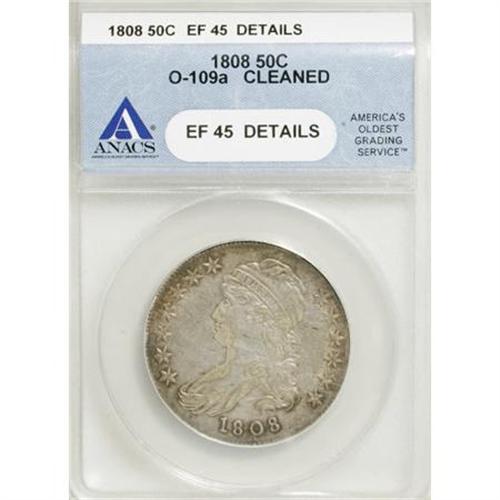 <B>1808 50C --Cleaned--ANACS. XF45 Details.</B></I> O-109 a NGC Census: (42/1250). PCGS Population (31/190). Mintage: 1,368,600. Numismedia Wsl. Price for NGC/PCGS coin in XF45: $380. (#6090)<BR><BR><B>Coin Engraver:</B> John Reich<BR><BR><b>Shipping:</b> Coins & Currency (<a target="_blank" href="http://www.heritageauctions.com/common/shipping.php">view shipping information</a>)
