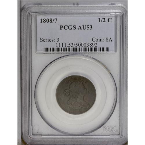 1808/7 1/2 C AU53 PCGS. C-2, B-2. The surfaces are ave