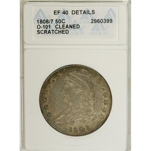 <B>1808/7 50C --Cleaned, Scratched--ANACS. XF40 Details.</B></I> O-101. NGC Census: (13/85). PCGS Population (17/56). Numismedia Wsl. Price: $425. (#6091)<BR><BR><b>Shipping:</b> Coins & Currency (<a target="_blank" href="http://www.heritageauctions.com/common/shipping.php">view shipping information</a>)