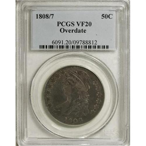 <B>1808/7 50C VF20 PCGS.</B></I> PCGS Population (6/100). NGC Census: (2/113). Numismedia Wsl. Price for NGC/PCGS coin in VF20: $200. (#6091)<BR><BR><B>Coin Engraver:</B> John Reich<BR><BR><b>Shipping:</b> Coins & Currency (<a target="_blank" href="http://www.heritageauctions.com/common/shipping.php">view shipping information</a>)