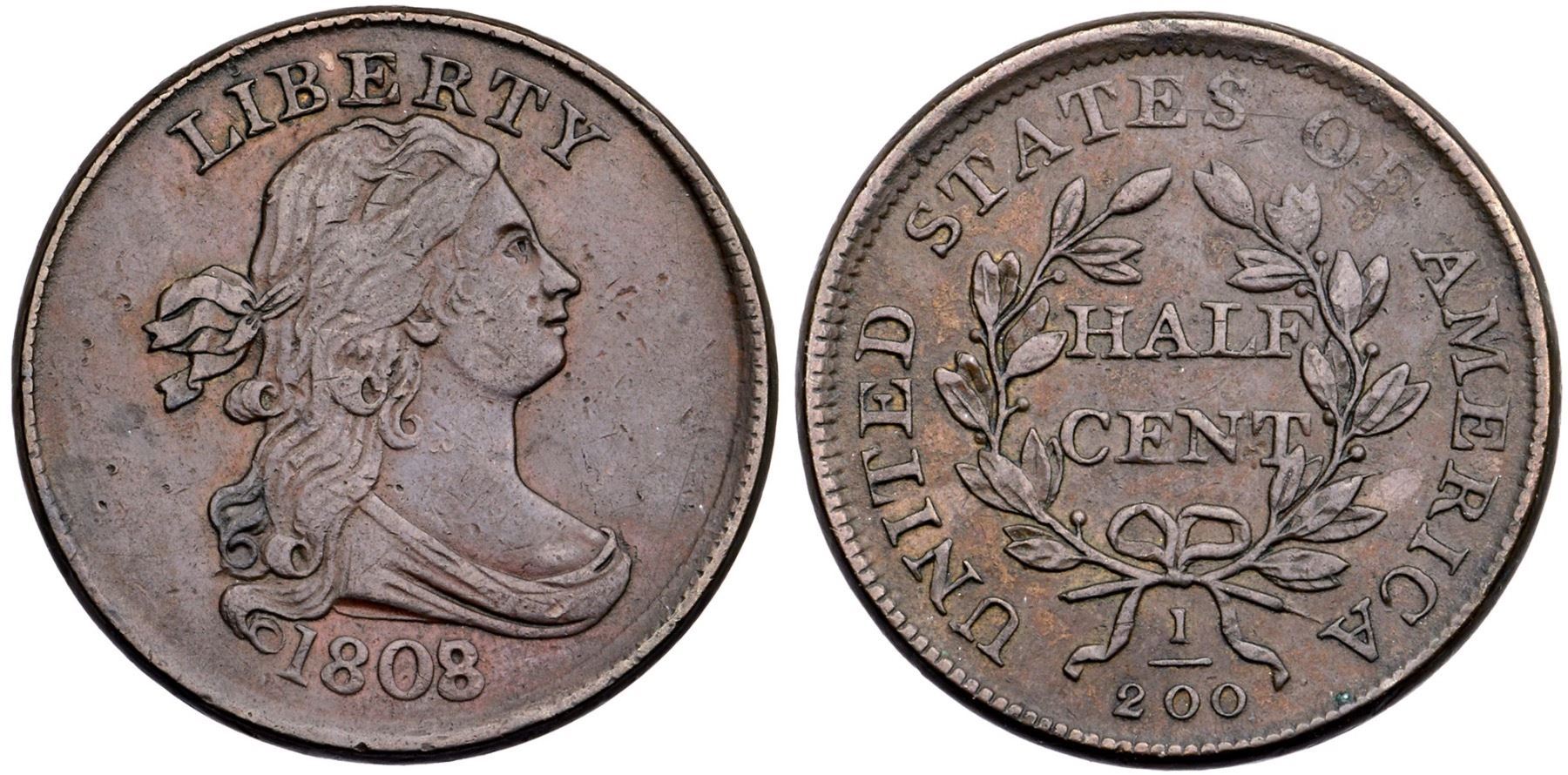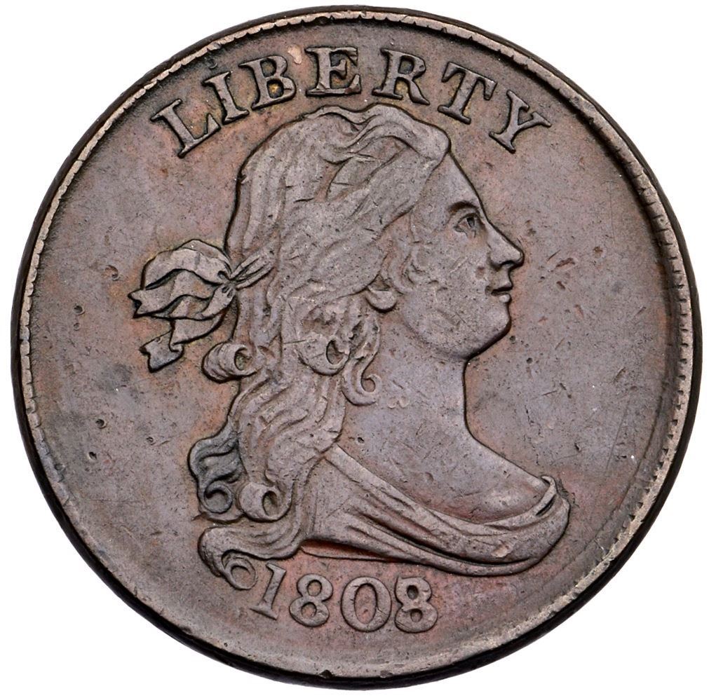 1808/7 C-2 R-3 VF25Ten points sharper with a couple of dozen small, dull pinpricks scattered about the obverse, strongest in the field off the nose tip. The only other mark is a small, very light rim bruise under the bust. The reverse is choice. Attractive glossy dark chocolate brown with traces of frosty lighter brown toning in a few protected areas. EDS, Manley State 1.0. The overdate is strong.Certificate Number: Pedigree: Ex; Roger S. Cohen, Jr. at 1986 EAC Convention-Dr. Wallace Lee Superior 5/27/2003:246 - Bob Kebler Collection