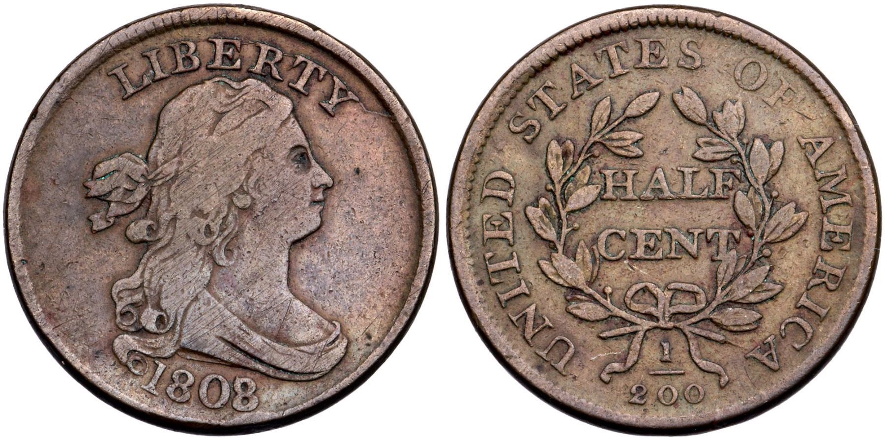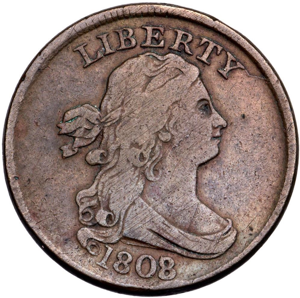 1808/7 C-2 R-3 VG8+VG10+ but there is a small rim bruise under the second 8 and several faint hairline scratches on the portrait. Otherwise this piece is very nice for the grade, nearly choice. Glossy chocolate and steel brown's. E-MDS, Manley state 2.0 late with a strong die crack at BERTY.Certificate Number: Pedigree: Ex; EAC sale 4/24/2010:79 - Russ Butcher 5/5/2012 (via CVM) - Bob Kebler Collection
