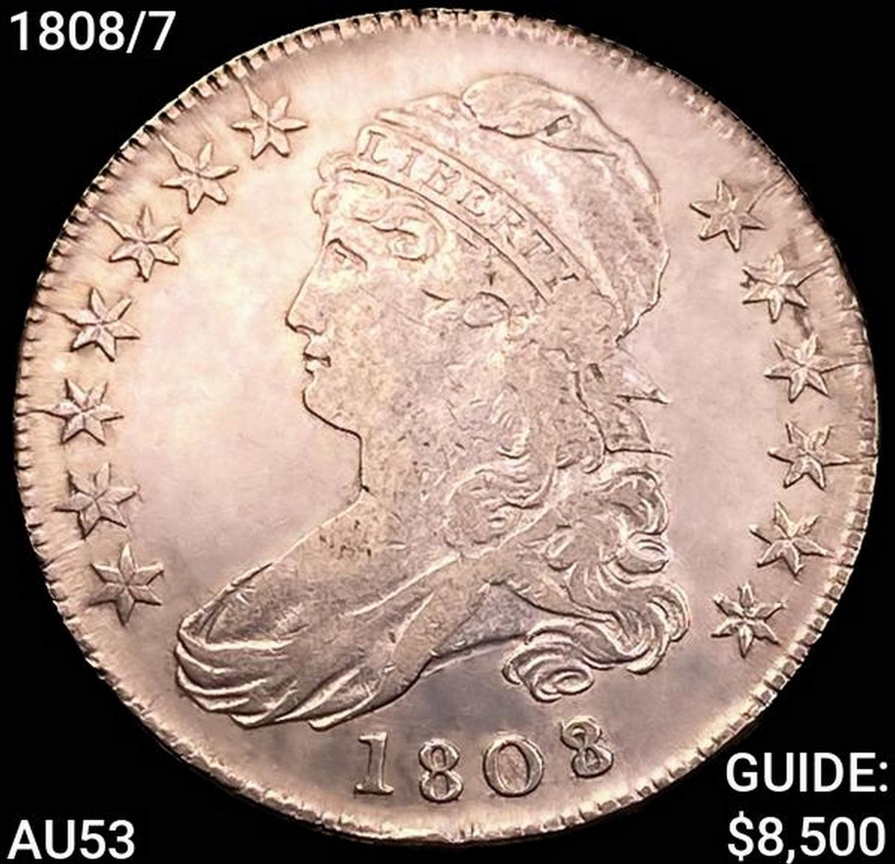 1808/7 Capped Bust Half Dollar CLOSELY UNCIRCULATED