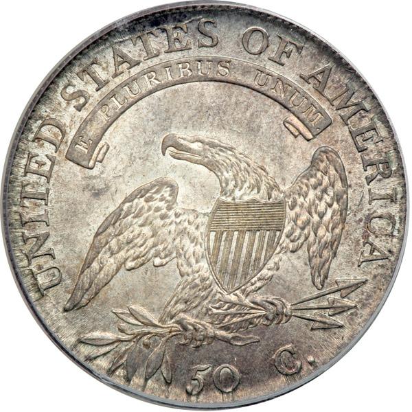 1808 Capped Bust Half Dollar. PCGS graded MS-63 PQ. Nice original toning and well struck for this date. A lovely coin that should be regraded. Pop 12; 32 finer (PCGS # 6090) .