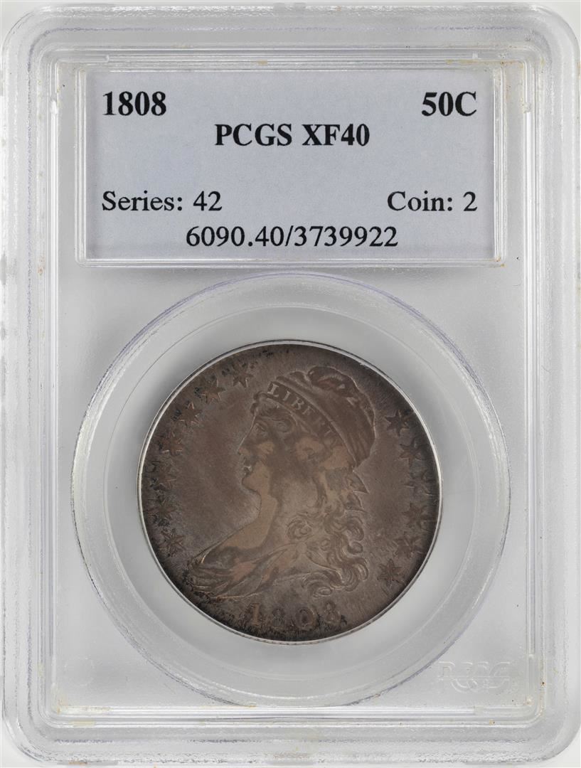 One 1808 Bust Half Dollar Coin PCGS XF40. PCGS Graded.