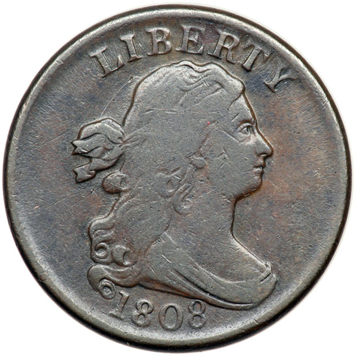 1808 C-3 R1 F15. Glossy chocolate and darker steel brown with some lighter brown tones in protected areas on the obverse. No roughness or marks, and the flowline luster suggests a higher grade. M-LDS, Manley state 4.0. The dentils on the obverse are gone and only a few remain visible on the reverse. Very nice for the grade.