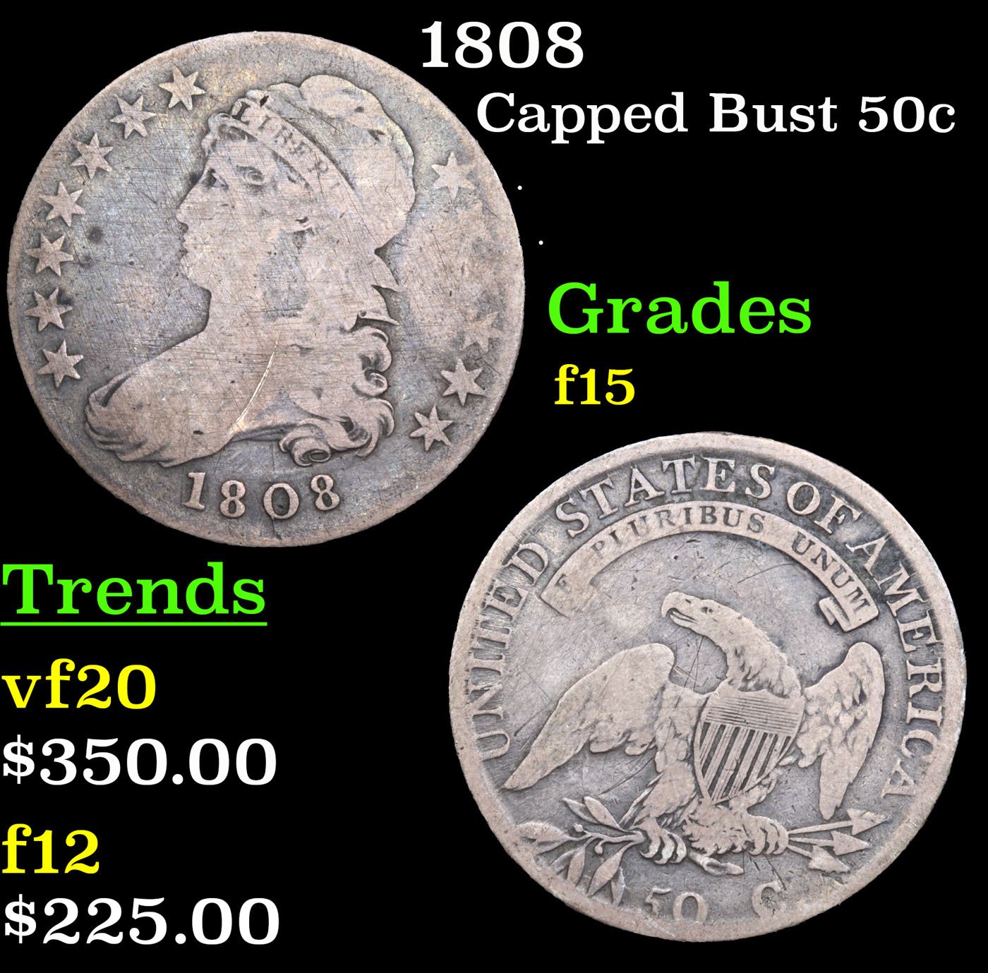 1808 Capped Bust Half Dollar 50c Grades f+.