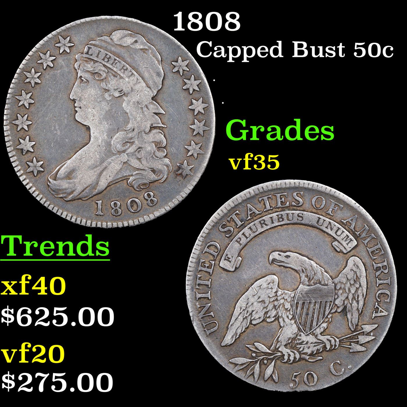 1808 Capped Bust Half Dollar 50c Grades vf++.