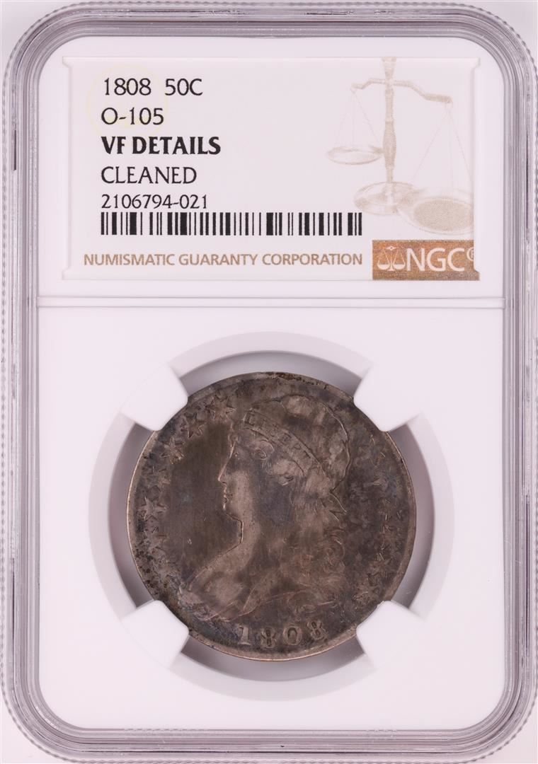 One 1808 Capped Bust Half Dollar Coin NGC VF Details O-105. NGC Certified.