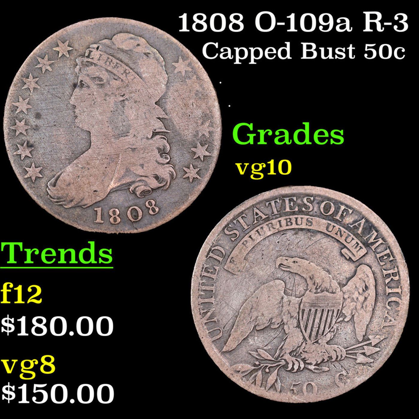 1808 O-109a R-3 Capped Bust Half Dollar 50c Grades vg+.