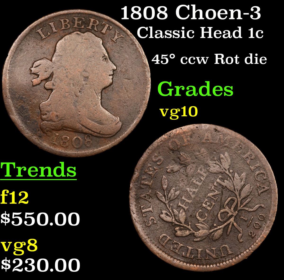 1808 Choen-3 Classic Head Large Cent 1c Grades vg+.