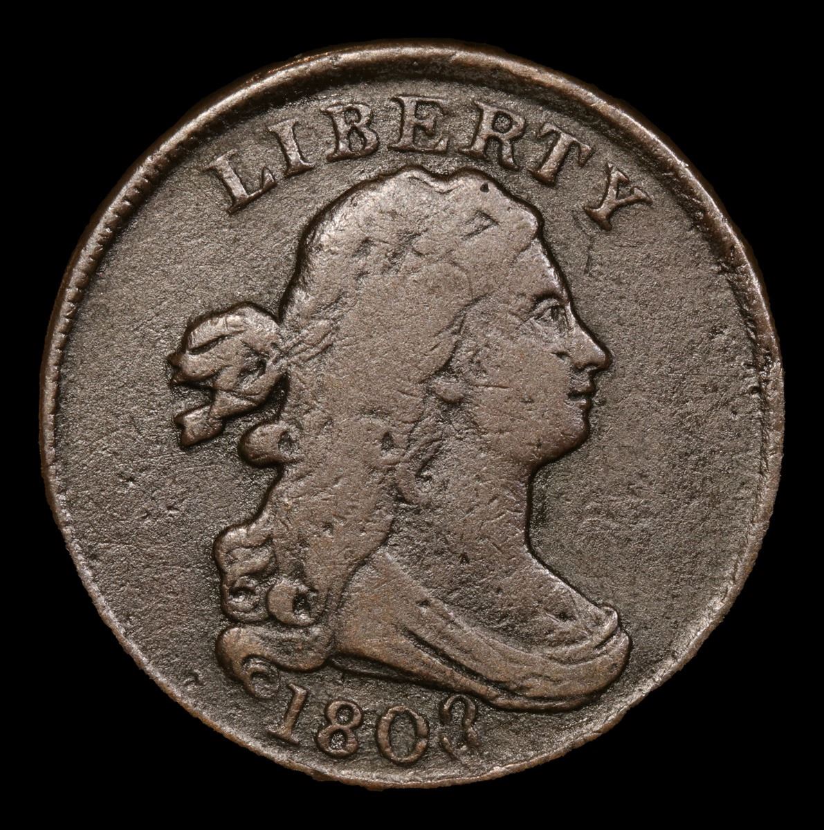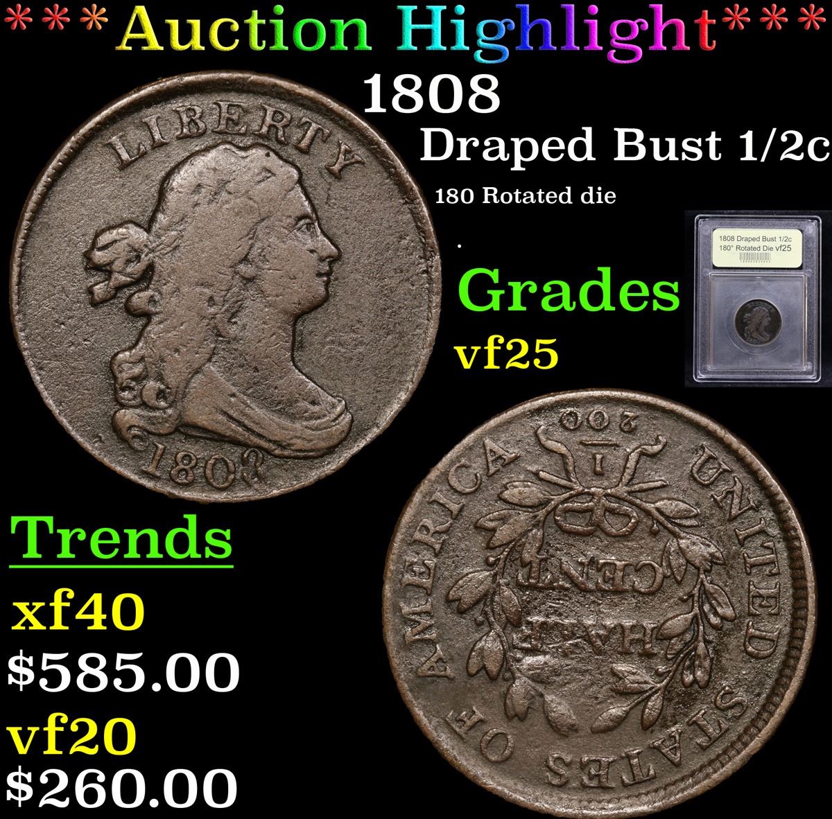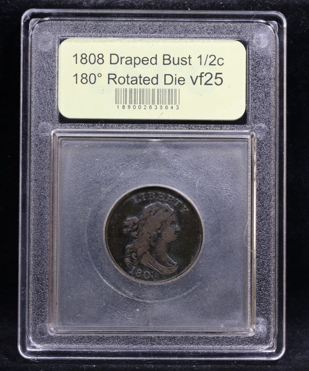 1808 180 Rotated die . Draped Bust Half Cent 1/2c Graded vf+ By USCG.