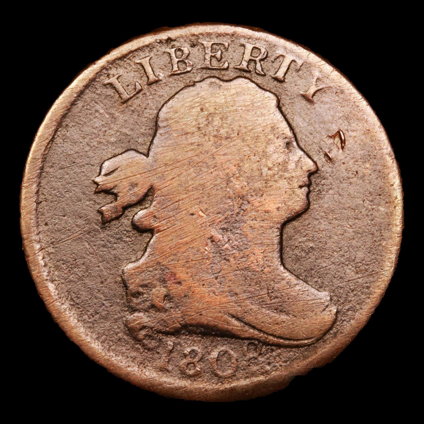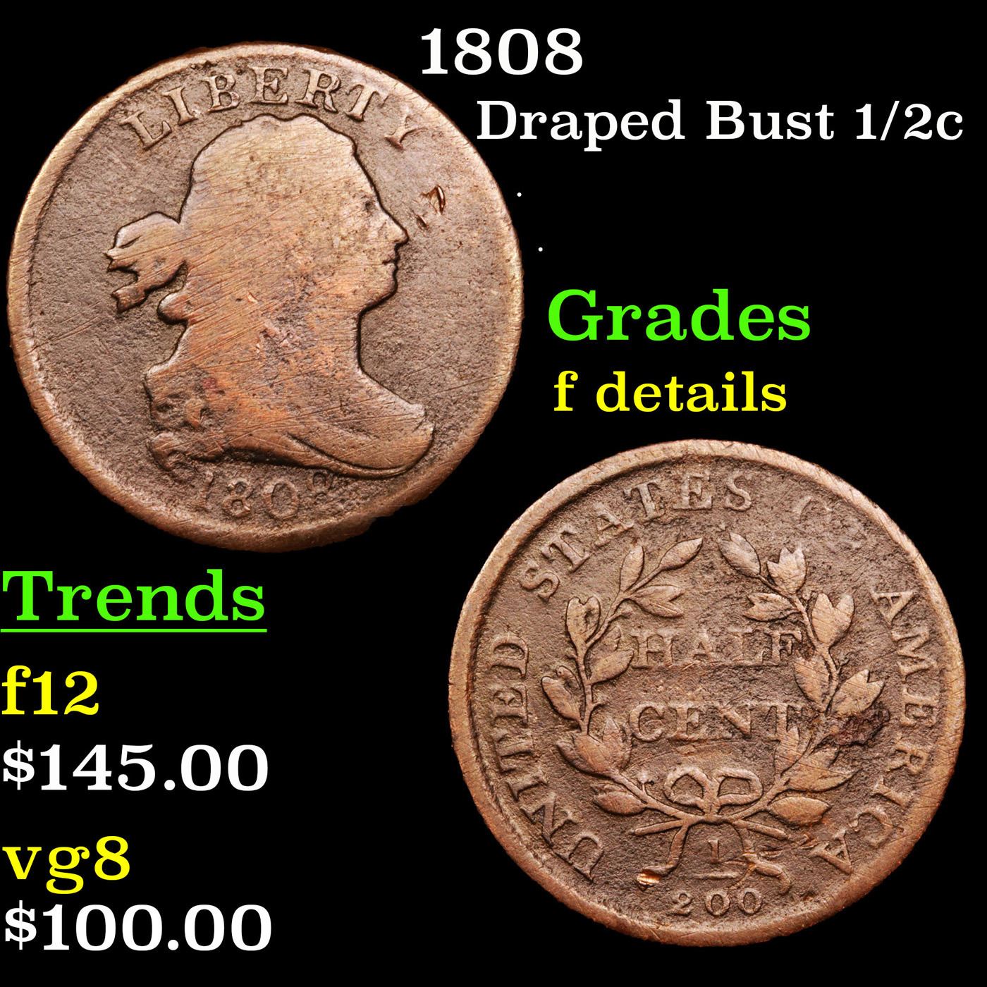 1808 Draped Bust Half Cent 1/2c Grades f details.