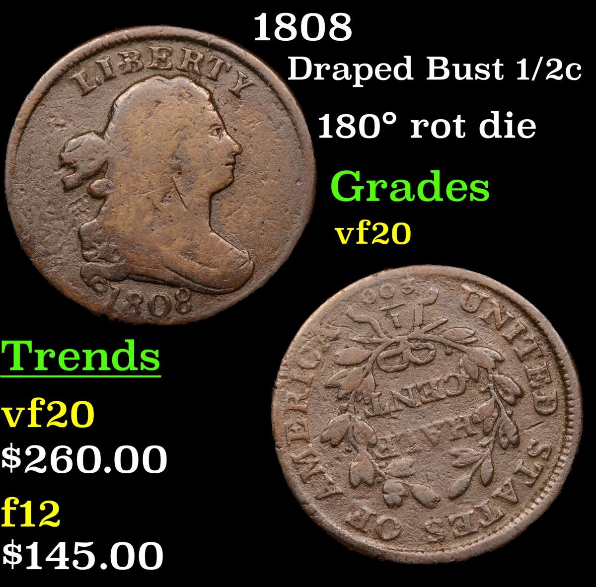 1808 Draped Bust Half Cent 1/2c Grades vf, very fine.