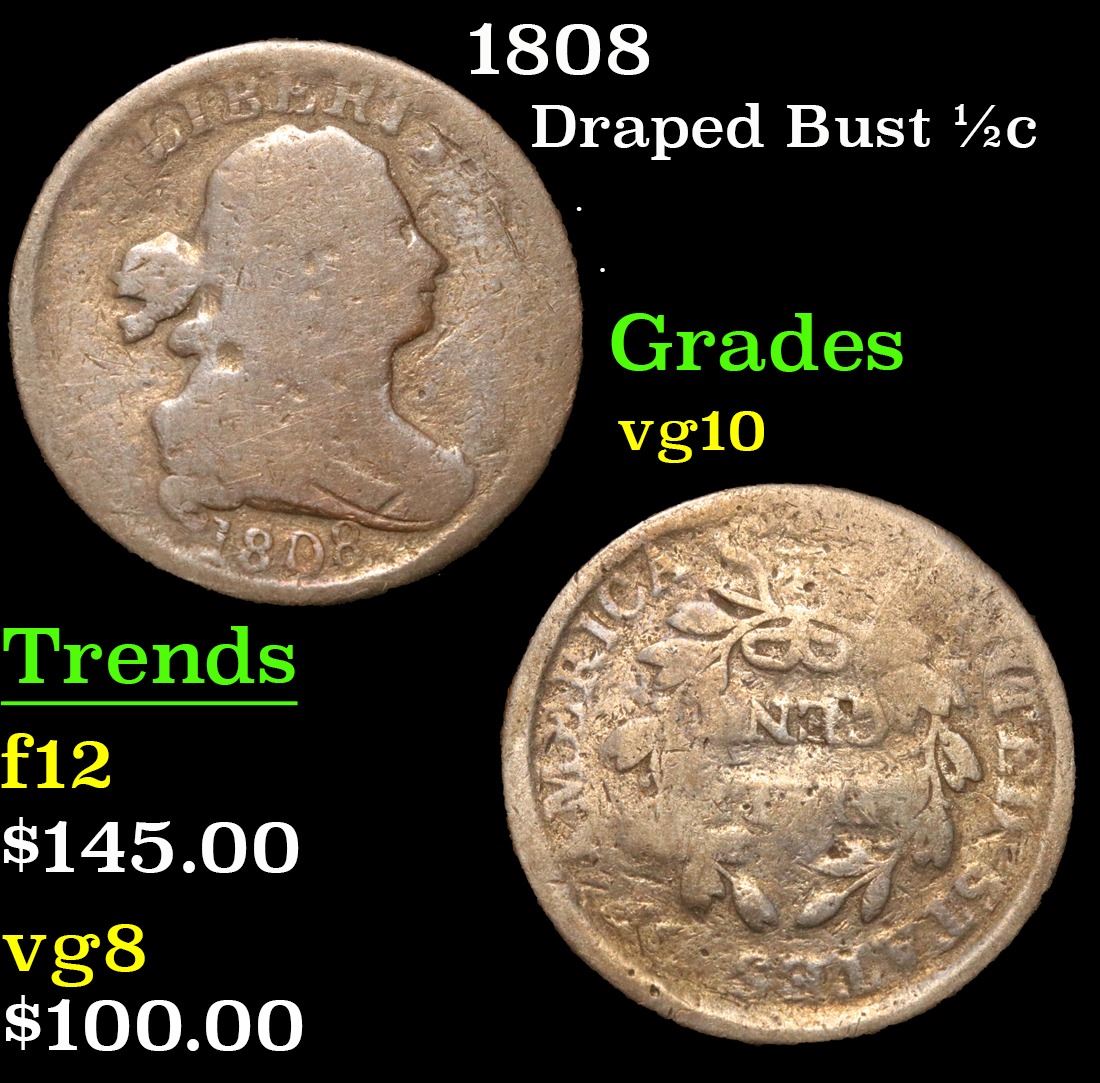1808 . . Draped Bust Half Cent 1/2c Grades vg+. A Corey's Pick