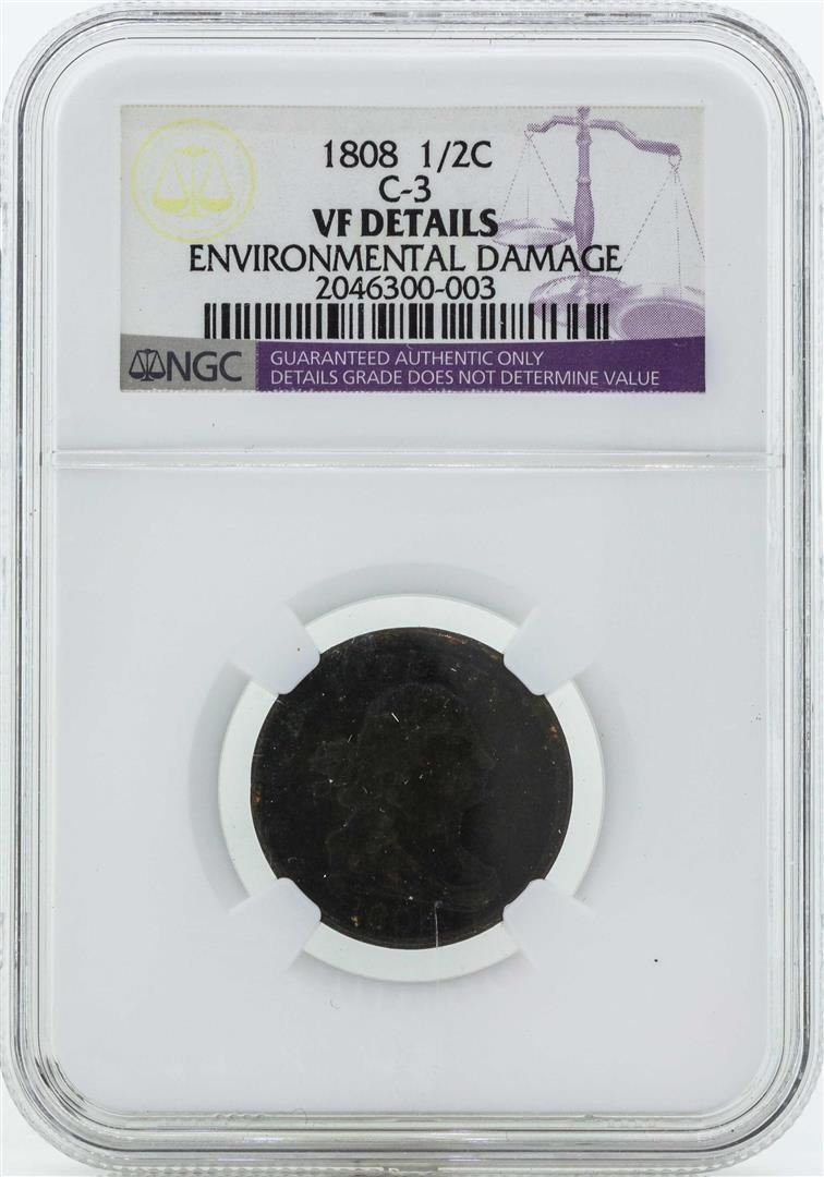 One 1808 Draped Bust Half Cent C-3 Coin NGC VF Details. NGC Certified.