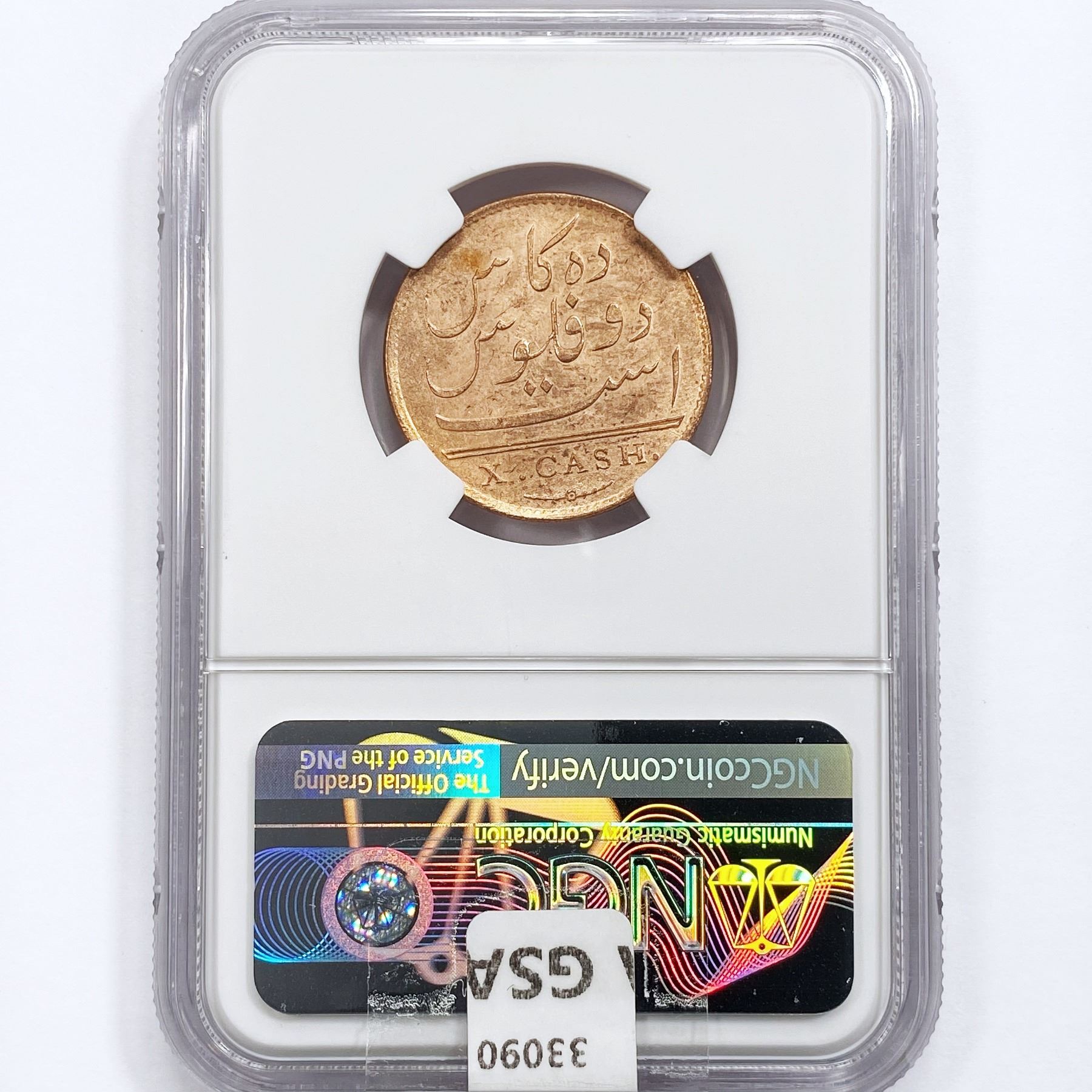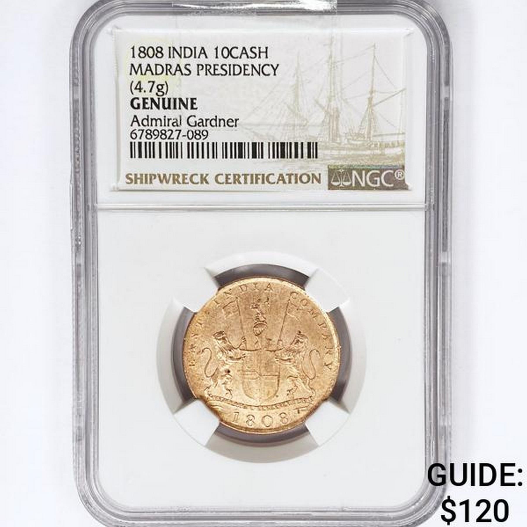 1808 India Madras Presidency 10 Cash Coin NGC Genuine