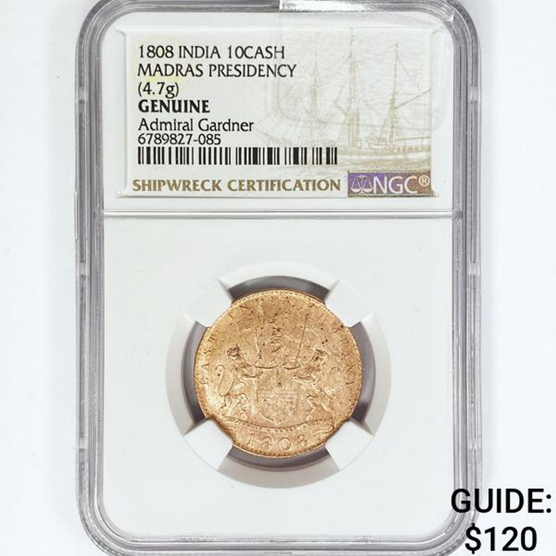 1808 India Madras Presidency 10 Cash NGC Genuine