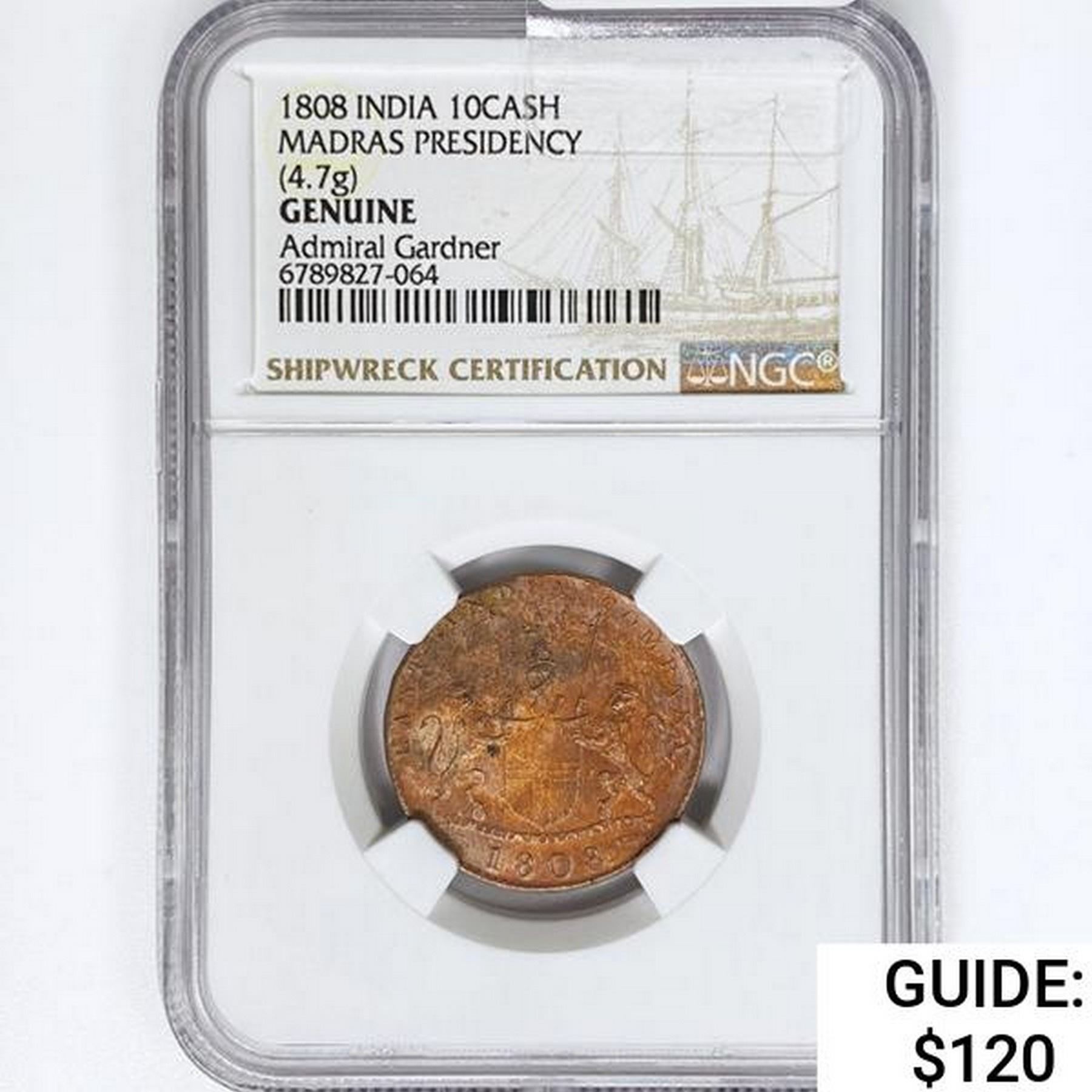 1808 India Madras Presidency 10Cash NGC Genuine