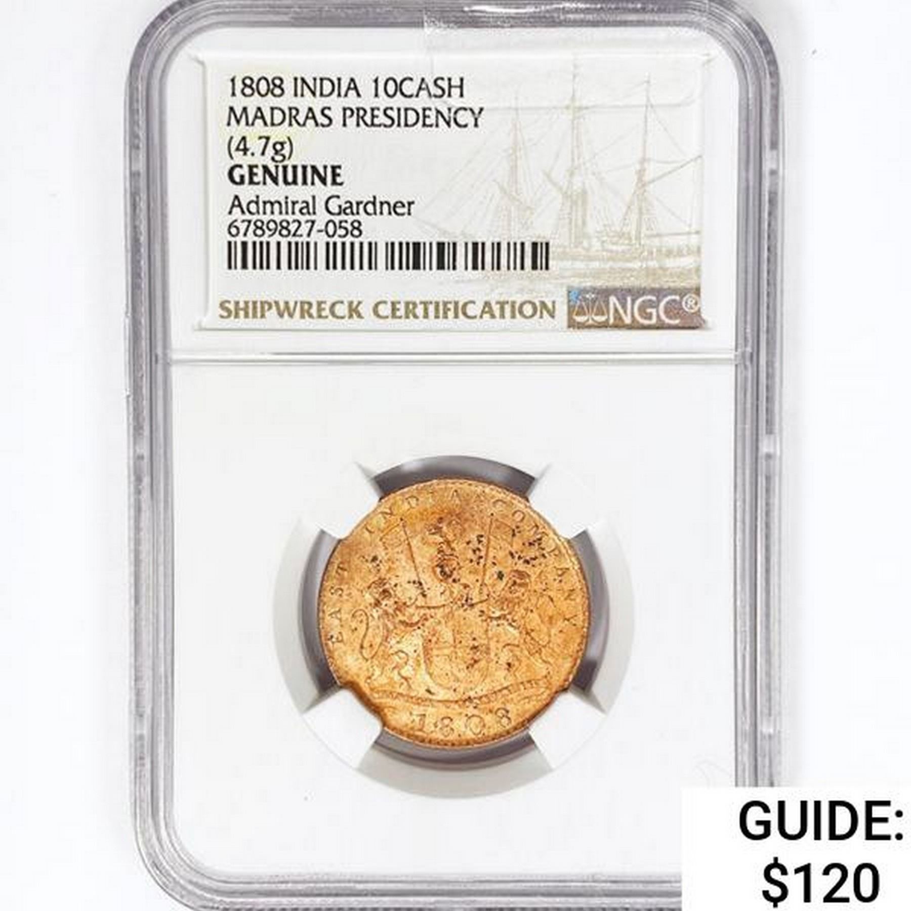 1808 India Madras Presidency 10Cash NGC Genuine