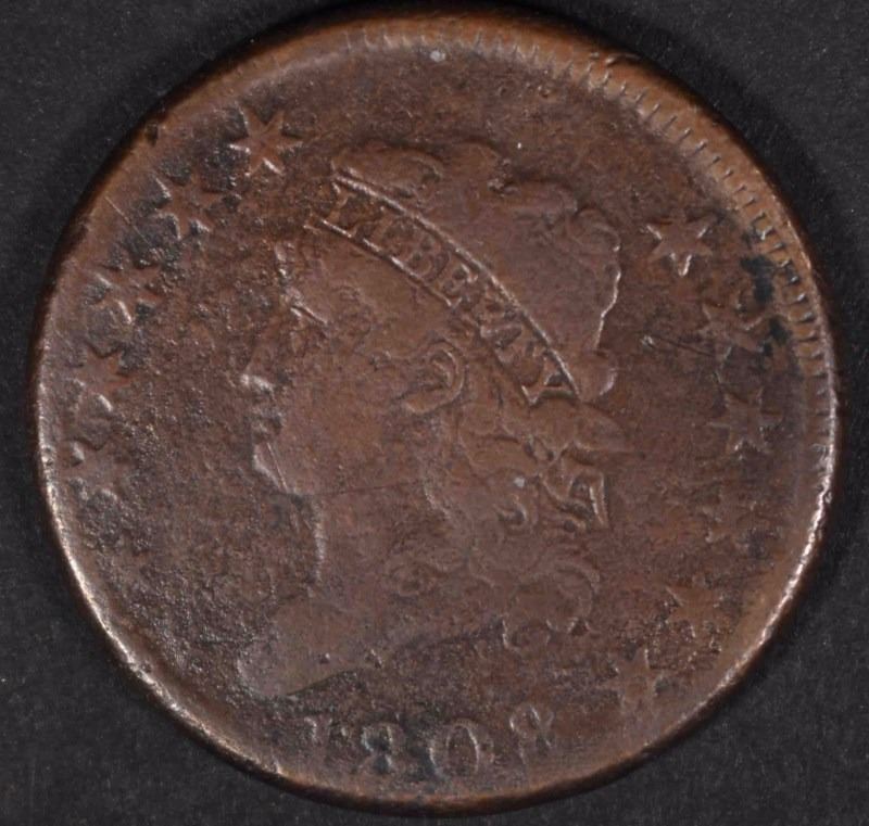 1808 LARGE CENT VG+ ESTIMATE $225 - $250.