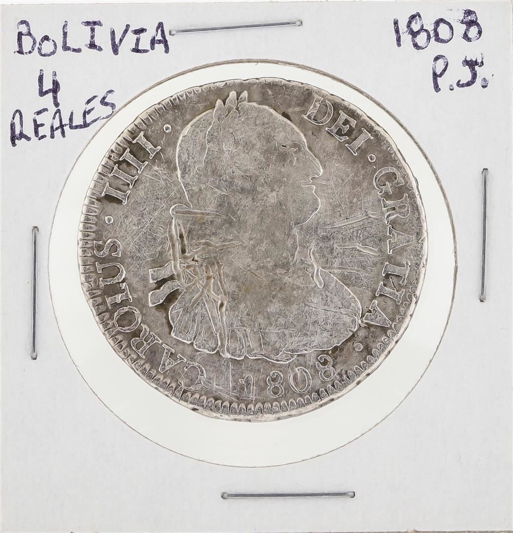 One 1808 PJ Bolivia 4 Reales Coin.