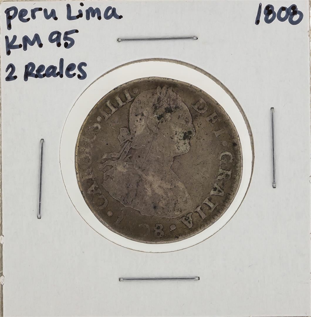 One 1808 Peru Lima 2 Reales Peru Lima Silver Coin.