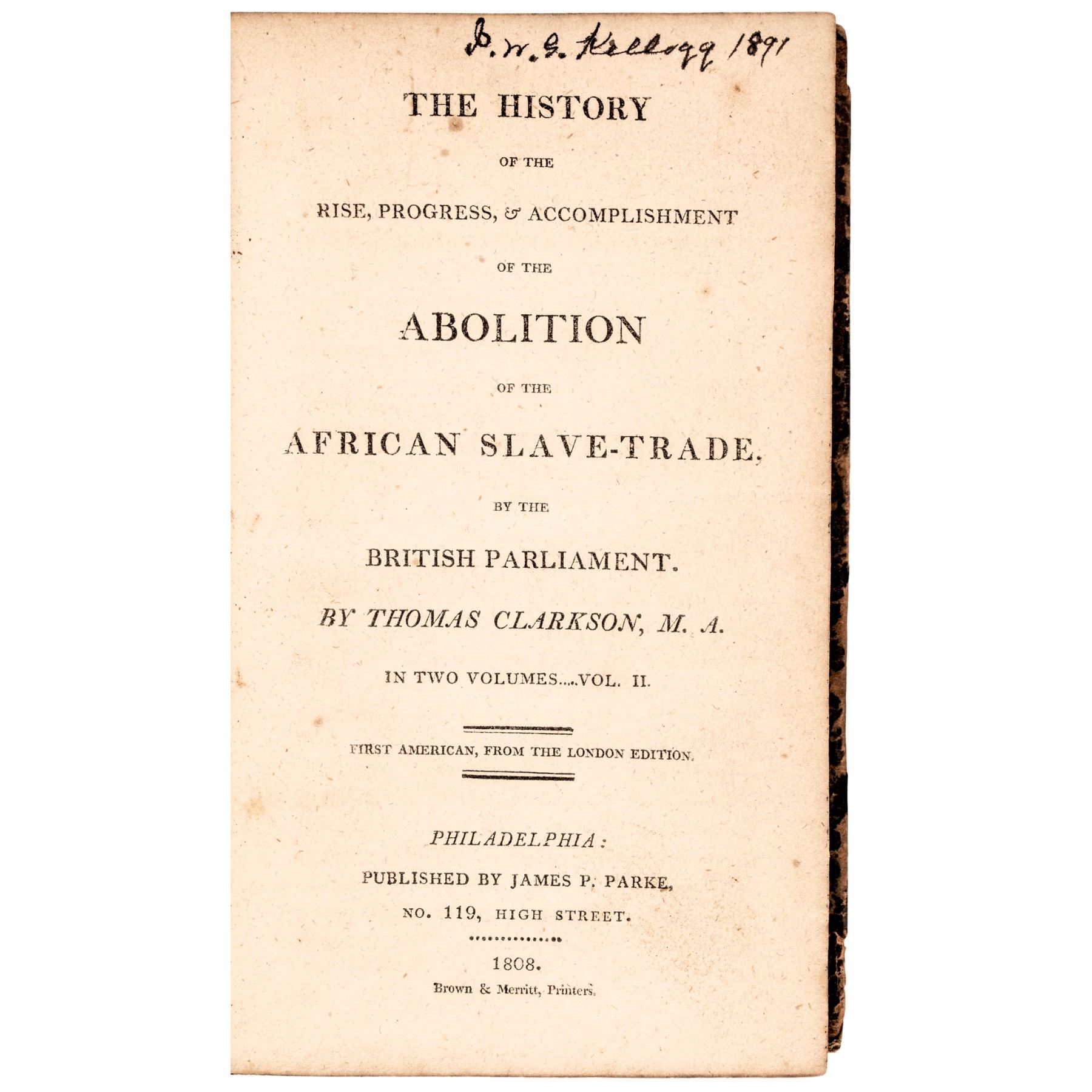 1808-Dated, First American Edition, Volume II, “The History of the Rise, Progress, & Accomplishment of the Abolition of the African Slave-Trade by the British Parliament.”, written by Thomas Clarkson, Published by James P. Parke, Philadelphia, Fine.