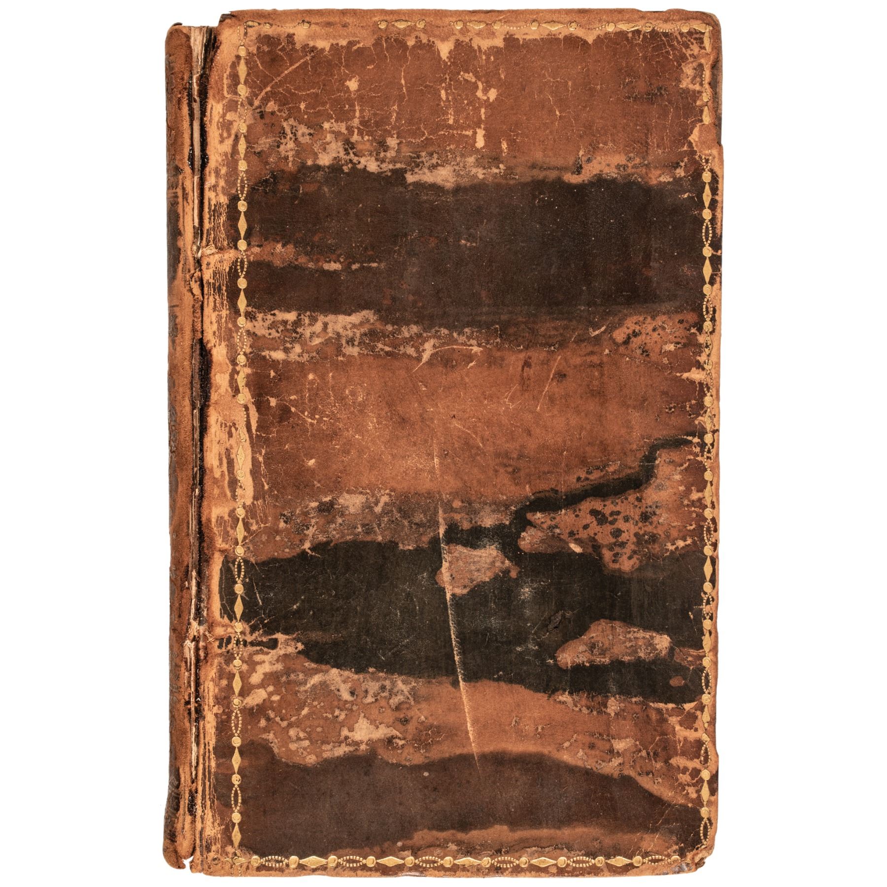 1808-Dated Hardcover Book, measuring 4.5” x 7.25” with 468 pages, well worn front leather covered boards with outline gilt decoration, complete but lacking the engraved Slave Ship diagram illustration. The spine is crackin and worn from use. Internally, the pages are crispt and clean with even tone and almost no spotting of foxing. This is Volume II of the 2 volume set written by Thomas Clarkson. Noted on title page, it is the rarer: “First American, from the London Edition.” This important work outlines in detail the history of the rise, progress, and accomplishment of the abolition of the African Slave-trade by the British parliament.