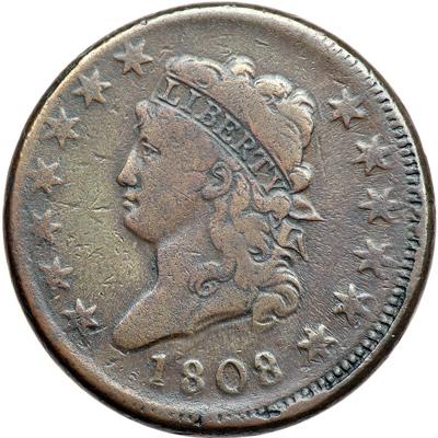 1808 S-278 R3. VG-8. Turban Head. Slightly sharper but very lightly cleaned on the obverse. Glossy chocolate brown with slightly lighter brown toning on the obverse devices. Smooth and attractive for the grade. LDS, Breen state VII, with small rim cud breaks from star 13 to under the date and a series of rim cuds from star 10 down past star 11. The obverse is misaligned a bit to K-10.