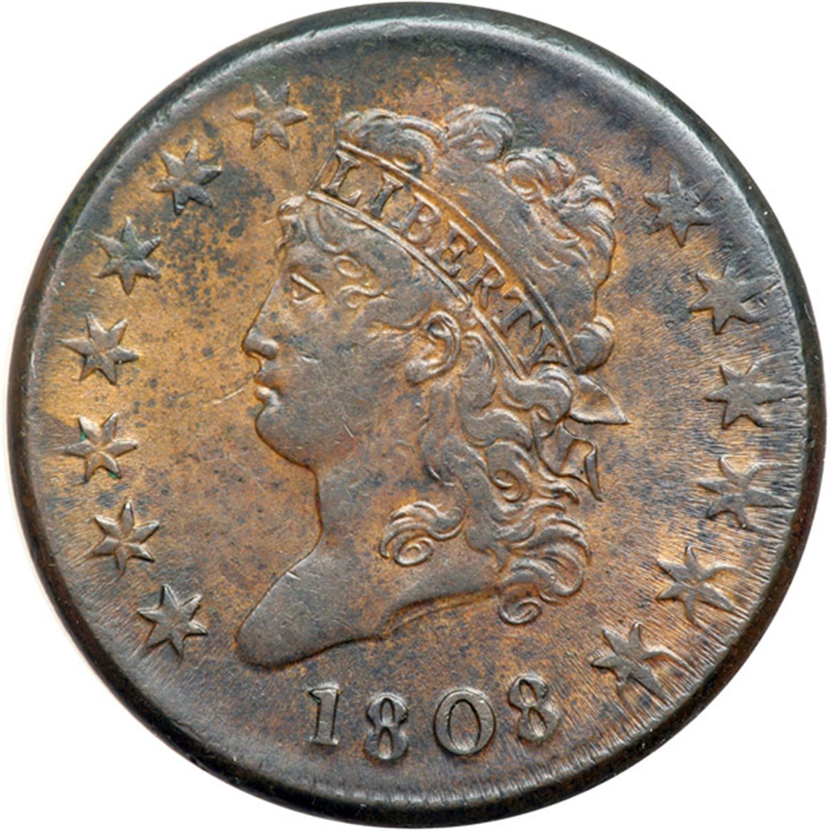 1808 S-279 R1 Turban Head VF35. Frosty dark steel and olive mottled with lustrous tan and light brown on the obverse. Attractive cartwheel luster covers the fields and protected areas on both sides. No notable defects, but the uneven toning on the obverse adversely affects the otherwise very nice eye appeal. M-LDS.
