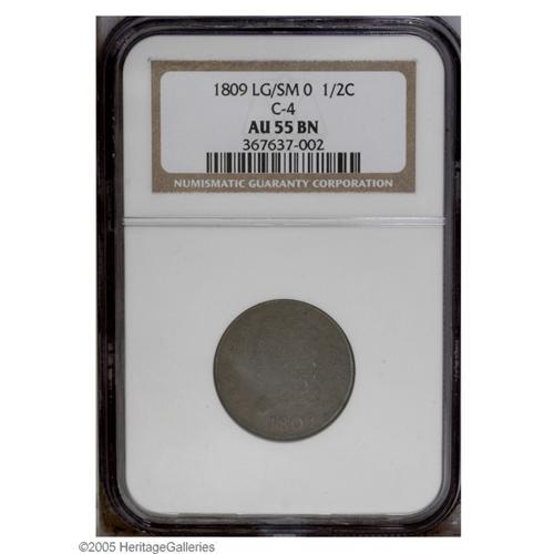 1809 1/2 C Lg/Sm O AU55 NGC. B-1, C-4, R.3. Recut 0 ( 1809[1/2 C] Recut 0 (Circle) AU55 NGC.