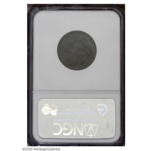 <B>1809<1/2 C> Recut 0 (Circle) AU55 NGC.</B></I> B-1, C-4, R.3. Recut 0 (inner circle); Leaf point close to O. Through many editions of the <I>Guide Book</B></I> this was listed as the "Circle inside 0" variety, an apt description. The last three editions of that reference have recorded a new name, the "Small o inside 0" variety. Medium brown surfaces are quite clean, and exhibit well struck design elements.