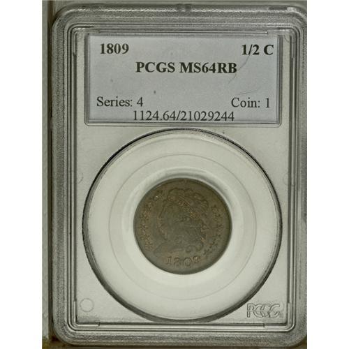 1809 1/2 C MS64 Red and Brown PCGS. C-3, B-4, R.1. The