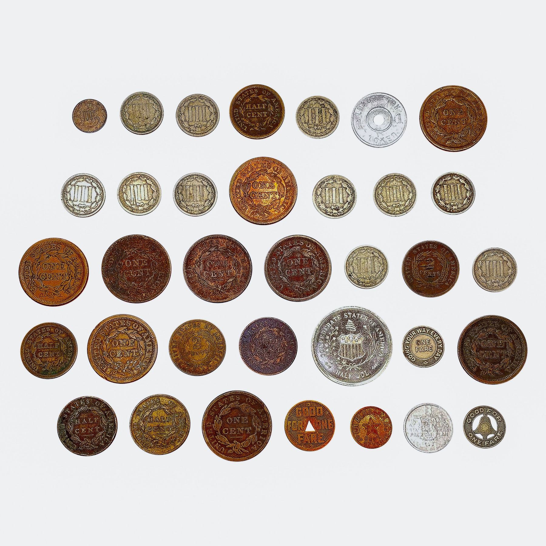 1809-1922 Varied US Odd Denom. Coinage and Tokens